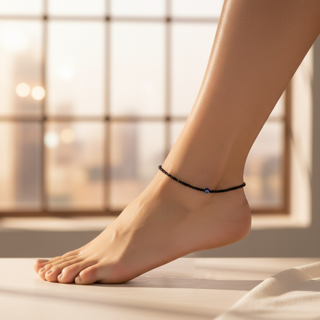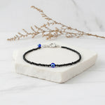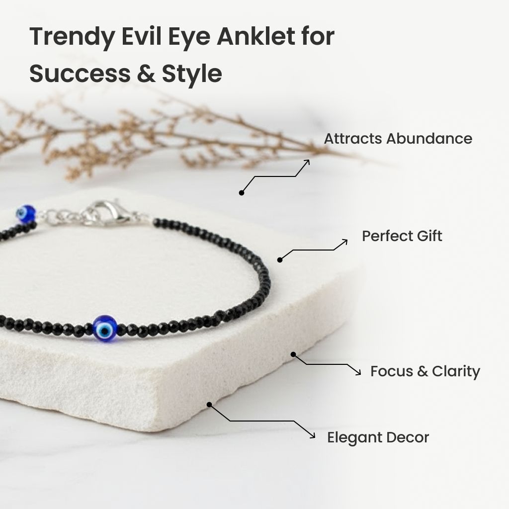 Step up your accessory game with this stylish Evil Eye Anklet, adorned with genuine black tourmaline beads and a protective eye charm. Designed to bring grounding energy, it effortlessly complements any outfit. A fashionable and meaningful gift for yourself or someone special.