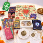 Offers a complete gifting experience with sweets, incense, and diyas included.