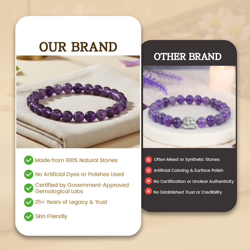 Loved for its calming and grounding presence, this Amethyst Bracelet features 22 natural amethyst crystals. It gently soothes overthinking and supports clear, composed thoughts. Wear it daily to invite inner stillness, improve focus, and embrace a relaxed mindset. A premium, stylish choice for mindful living.