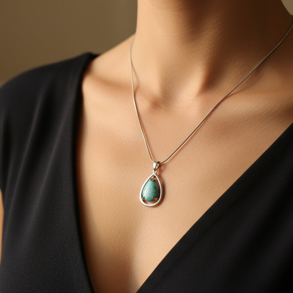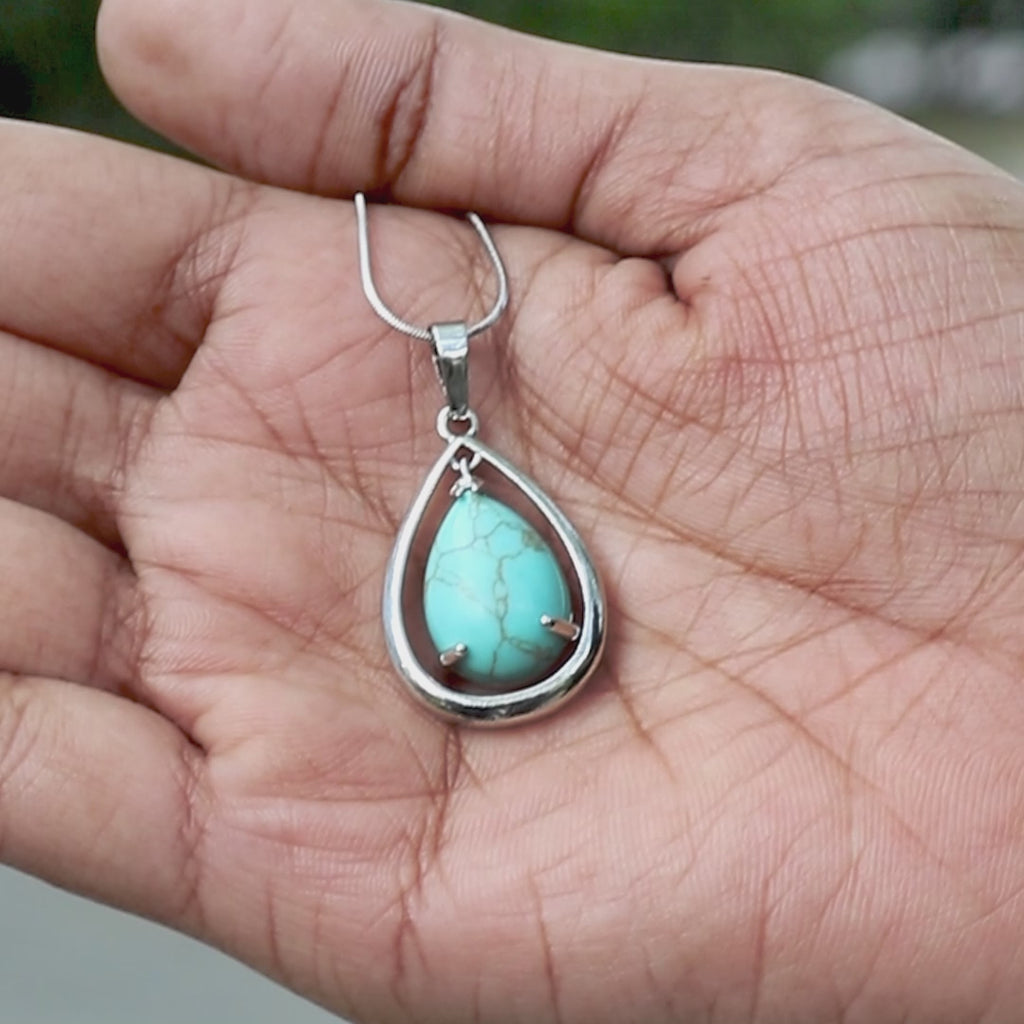 Add a touch of elegance with this Aquarius Turquoise Pendant, designed for both style and energy. This aesthetic pendant showcases natural turquoise in a sleek design, making it perfect for gifting. Ideal for anyone who loves meaningful jewelry, it’s a trendy accessory for everyday wear or special occasions. The pendant comes with a matching chain, so it’s ready to wear right out of the box.