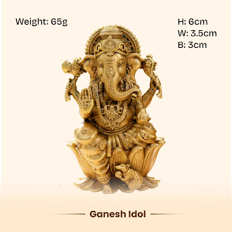 The brass Ganesh idol is a beautifully crafted piece, symbolizing wisdom, prosperity, and protection. This premium-quality Ganpati murti or idol radiates positivity, making it a perfect addition to your home, puja room, or as a gift. With its aesthetic and divine design, this brass Ganpati idol adds blessings, harmony, and elegance to any sacred or living space.