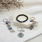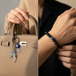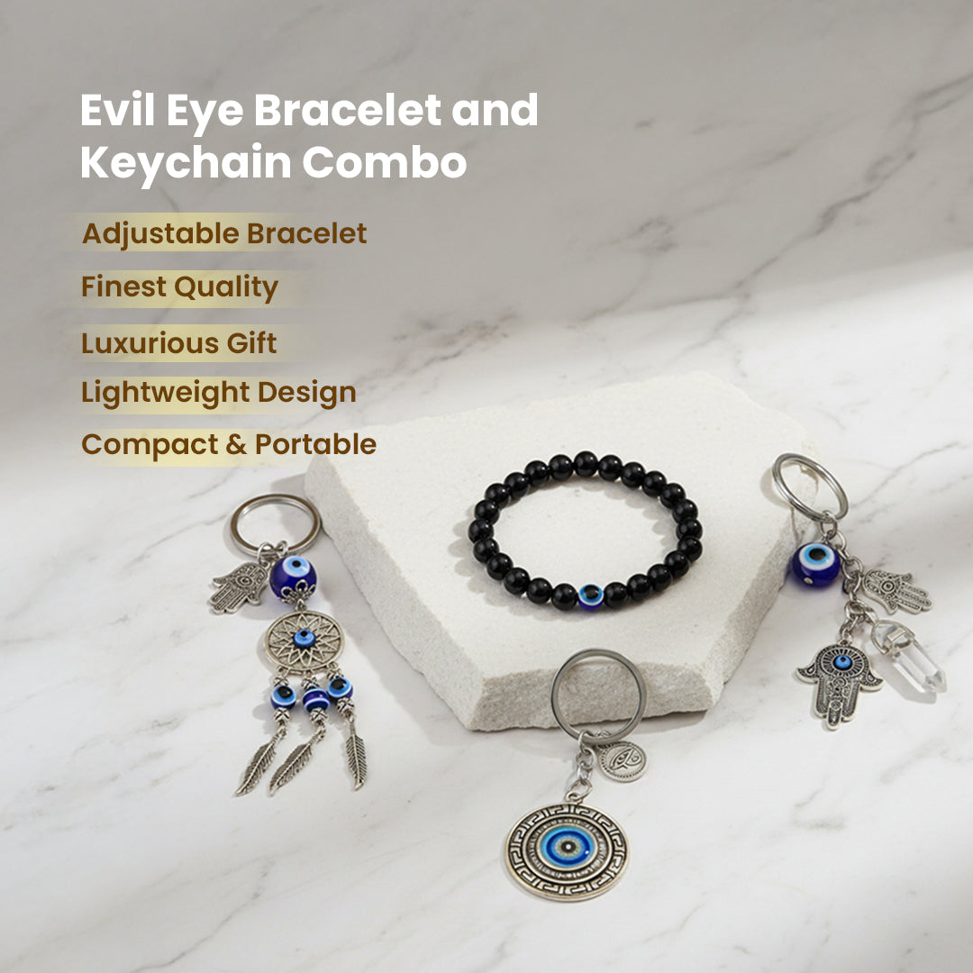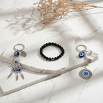 The Evil Eye Bracelet and Keychain Combo is designed for everyday protection and thoughtful gifting. This set includes one stylish bracelet and three matching keychains, making it easy to carry symbolic protection wherever you go. Simple in design, which blends easily with daily wear and accessories.