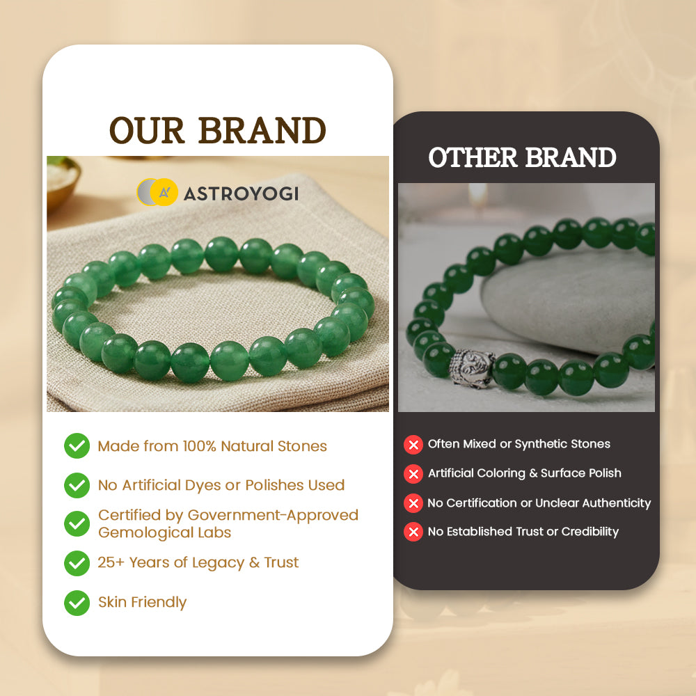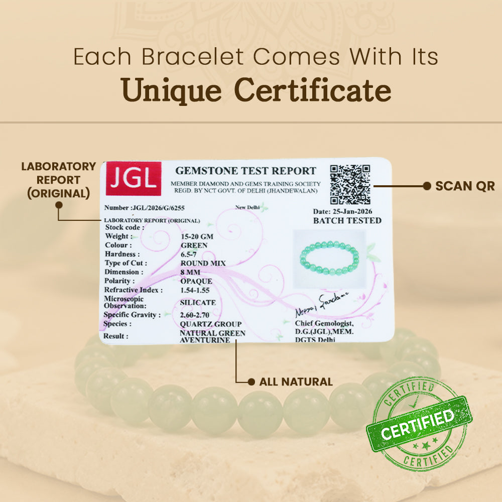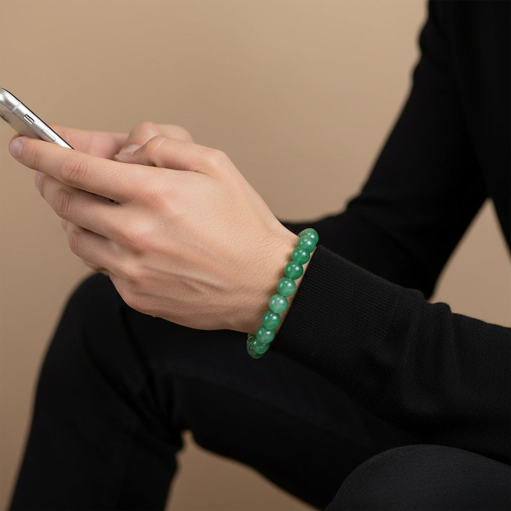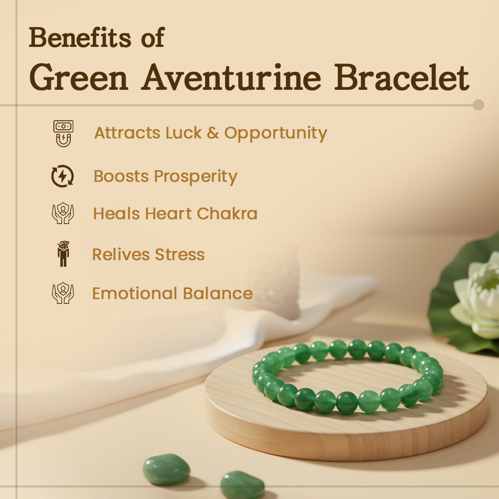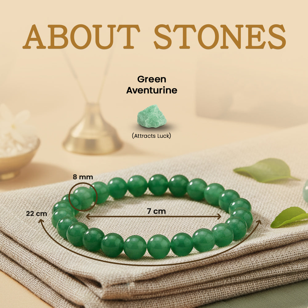 Known as the “Stone of Opportunity”, Green Aventurine plays an important role to attracts opportunities and supporting personal growth. Crafted with 22 natural crystal beads, this green aventurine bracelet helps you stay motivated, confident, and emotionally steady. Daily use of this bracelet balances energy and supports positive decision-making. The unisex design of this bracelet makes it the most loved accessory for those seeking progress and harmony.