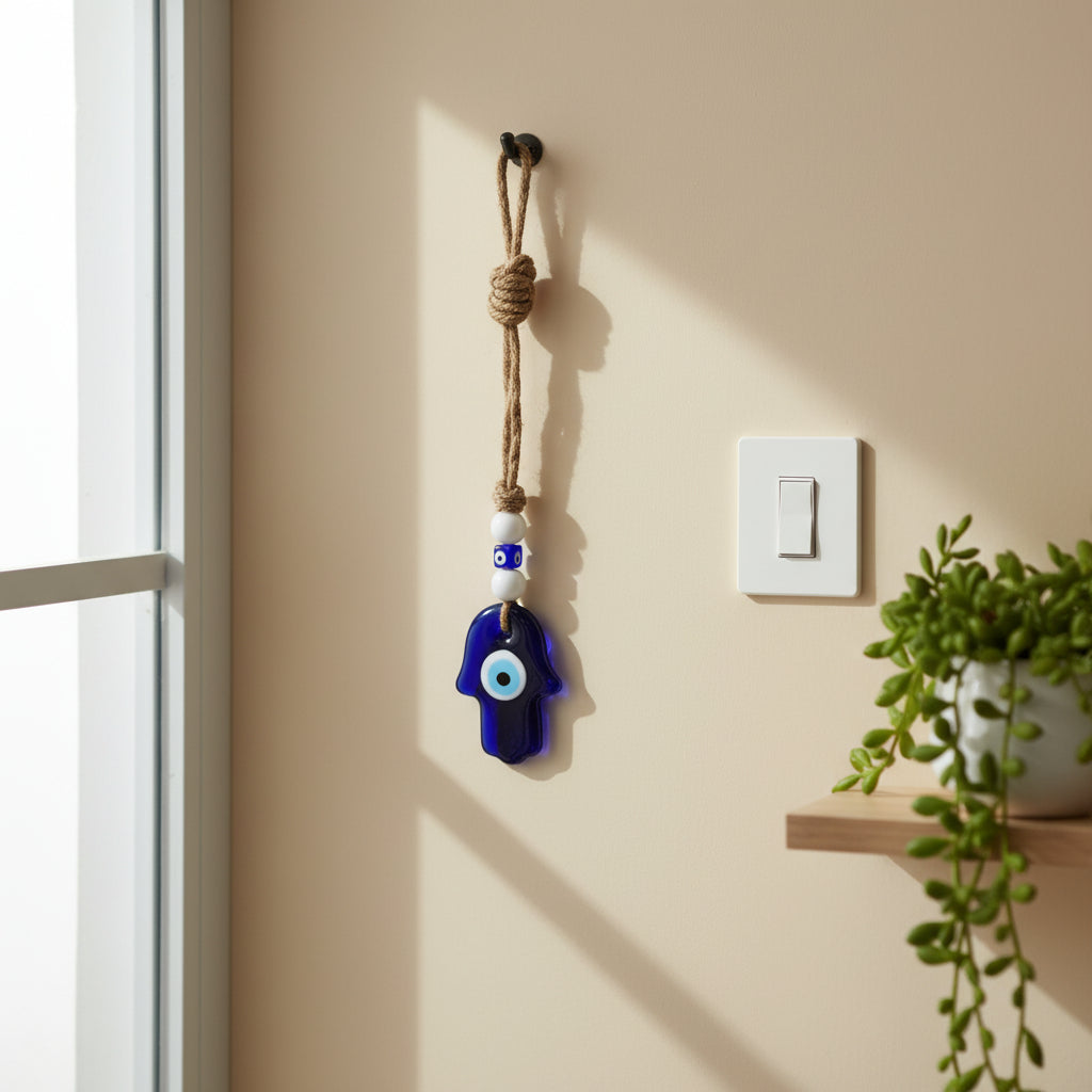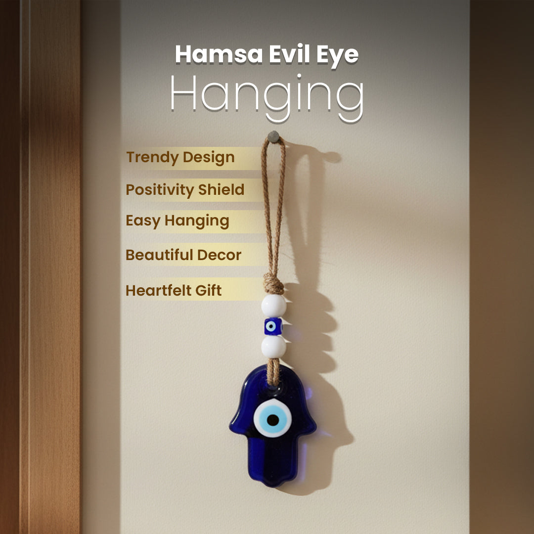 Protect your home with this beautiful Hamsa Evil Eye Hanging. Designed for doors or walls, it brings positive energy and wards off negative vibes. Made with durable materials, its vibrant design adds charm to any space. Perfect as a thoughtful gift or a decorative accent for your home.