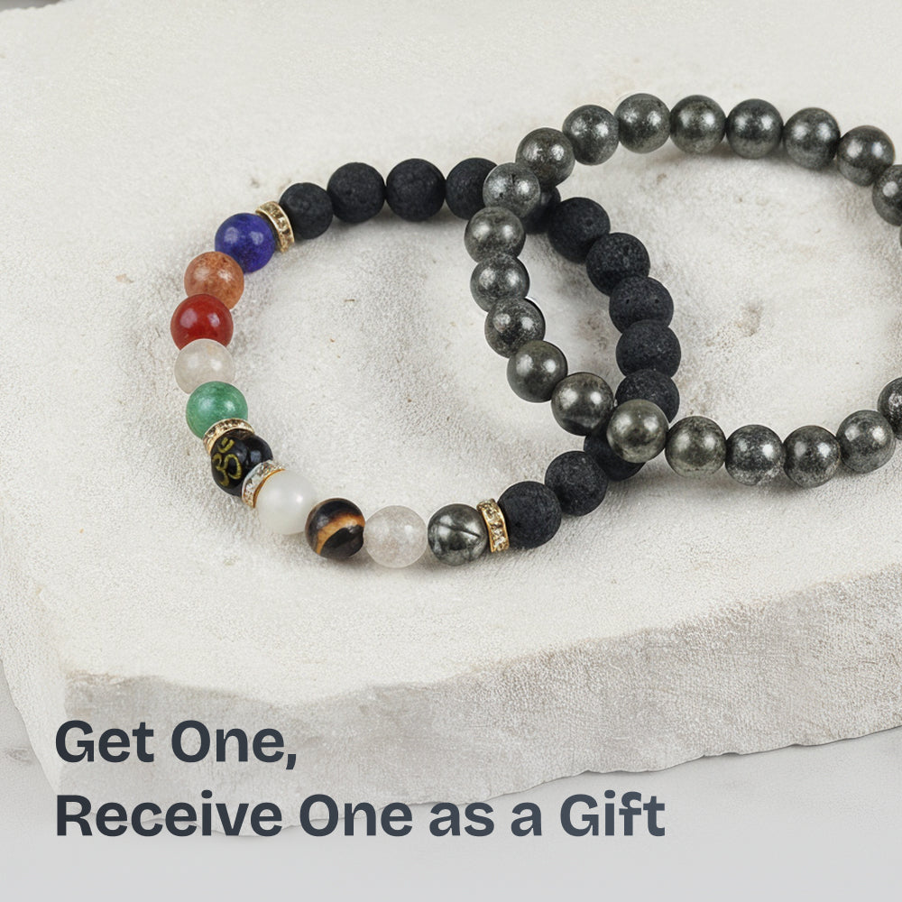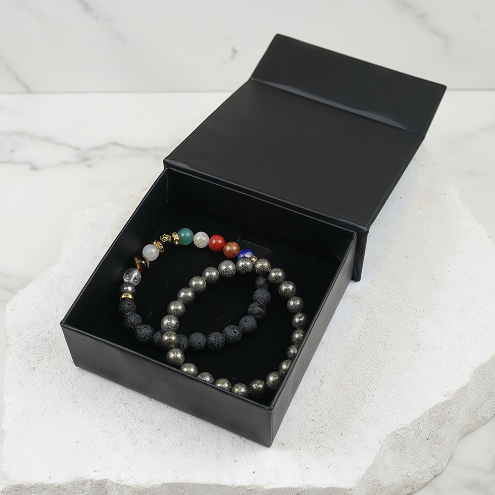 This stylish bracelet combo brings together the Navgrah Bracelet for balanced energy and the Raw Pyrite Bracelet for grounding and focus. Wear daily to stay centered, enhance confidence, and add a meaningful accessory to your look.