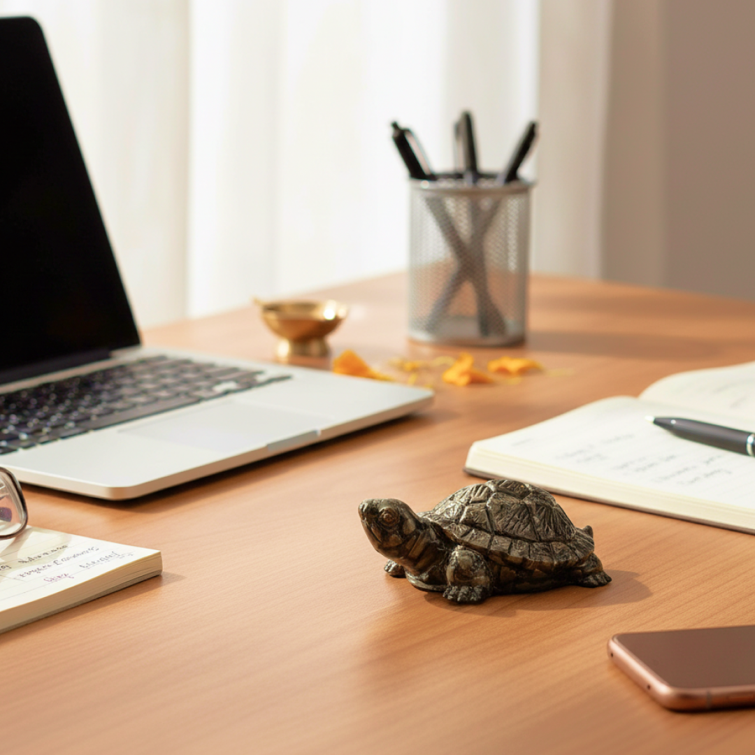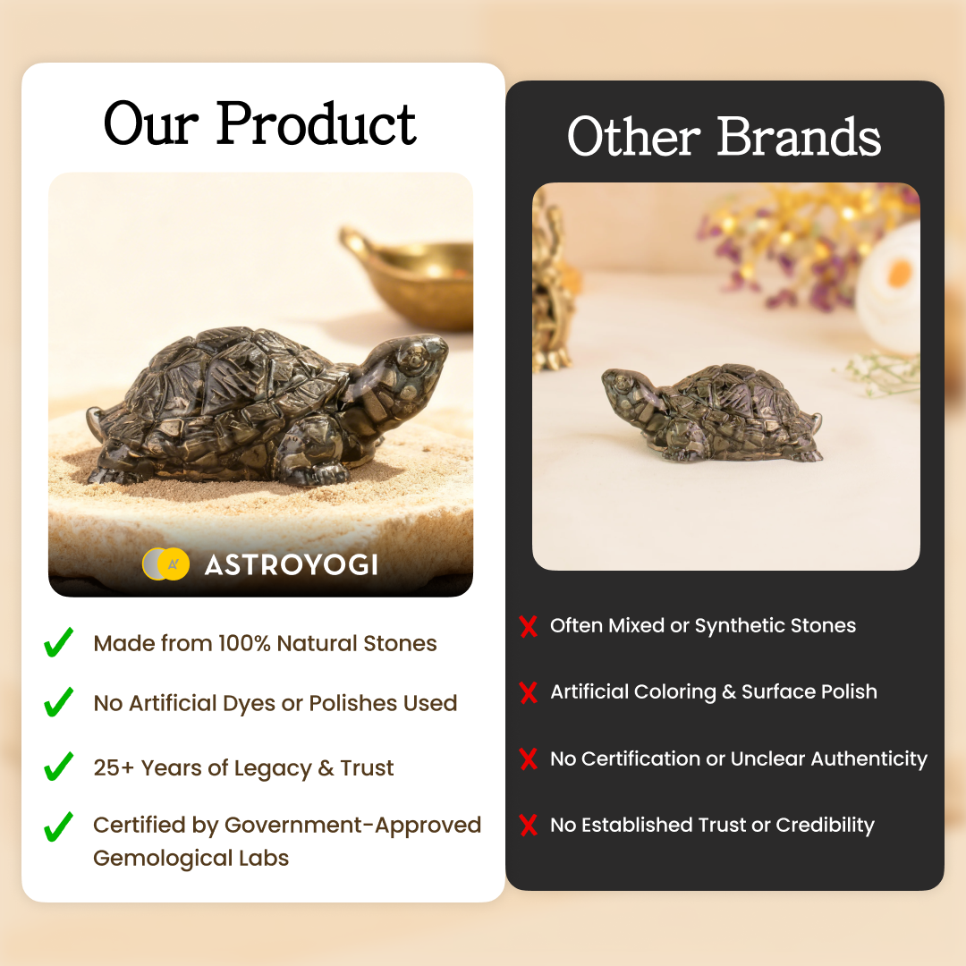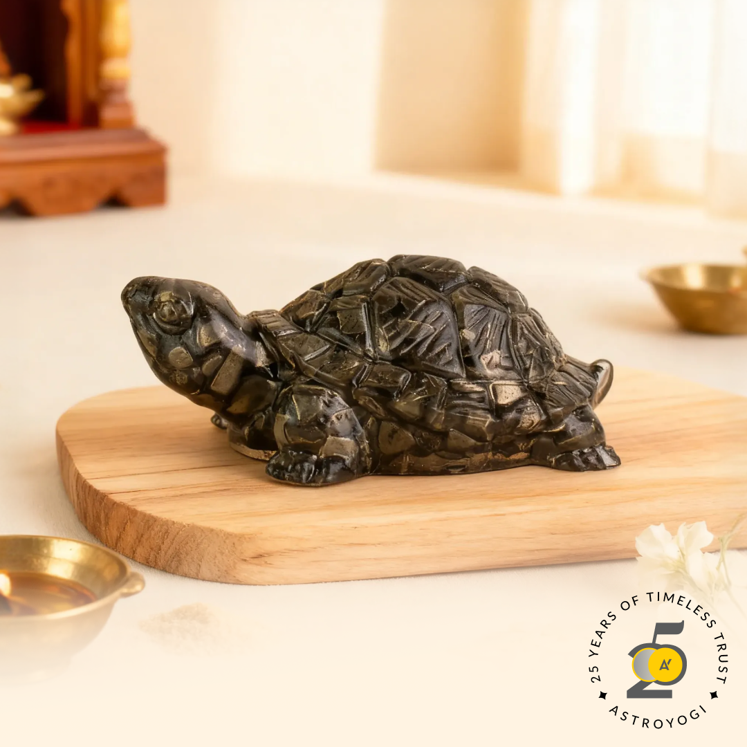 In traditional beliefs, the turtle represents stability, protection, and long life. When combined with Pyrite, it is thought to bring financial growth and career success. The original Pyrite Tortoise from Astroyogi is made with authentic stone and designed as per Vastu guidelines, making it a reliable choice for those seeking positive results.