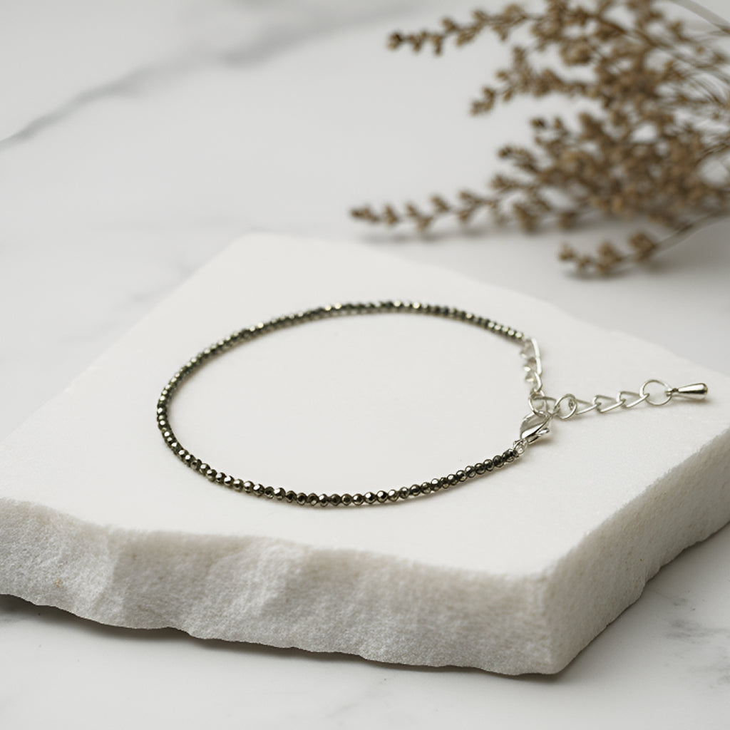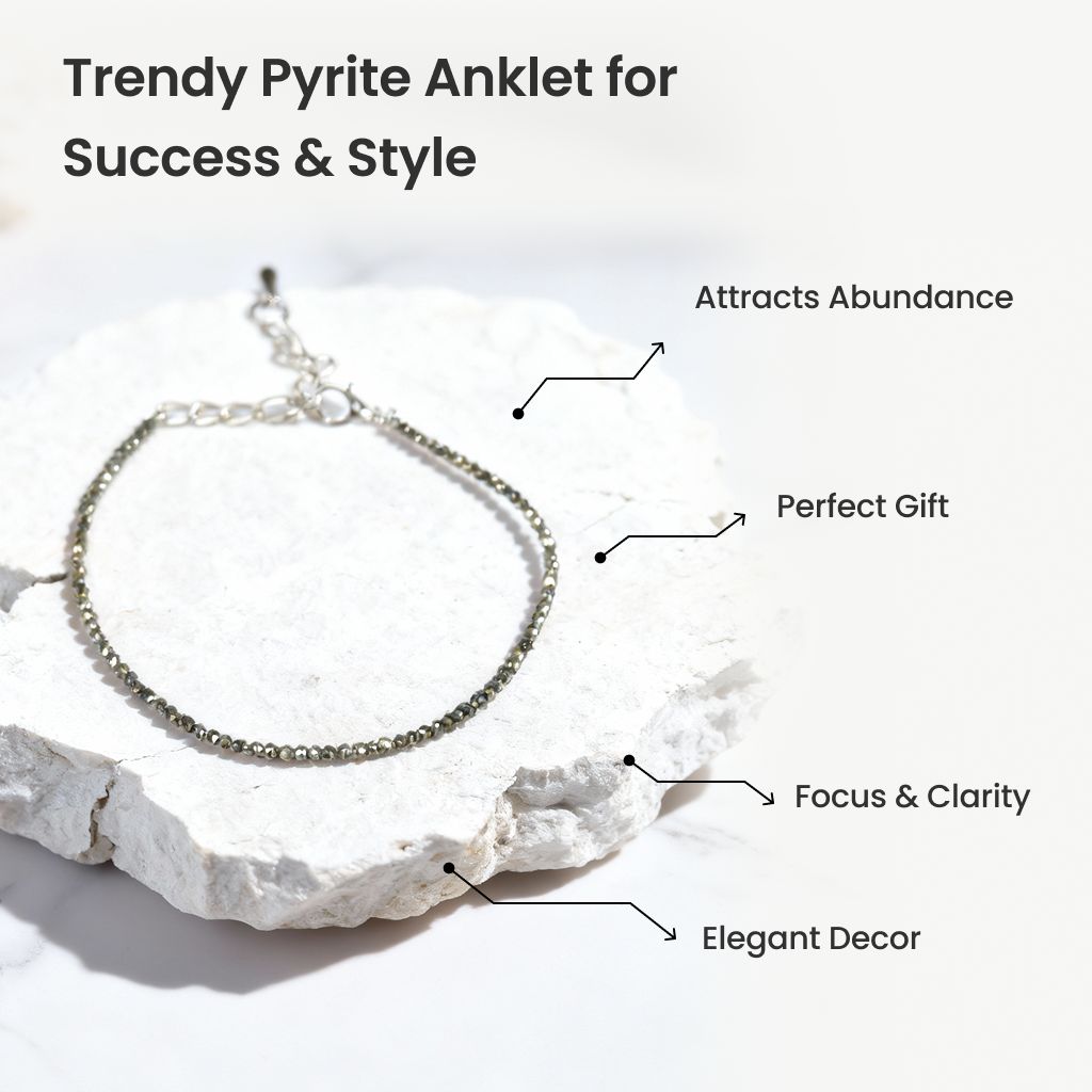 Unlock positive energy with the Raw Pyrite Anklet, designed with natural pyrite beads to bring in prosperity and boost your confidence. The anklet’s connection to the earth helps make each step feel more grounded and purposeful. It’s a perfect mix of everyday elegance and meaningful charm, making it an ideal gift.