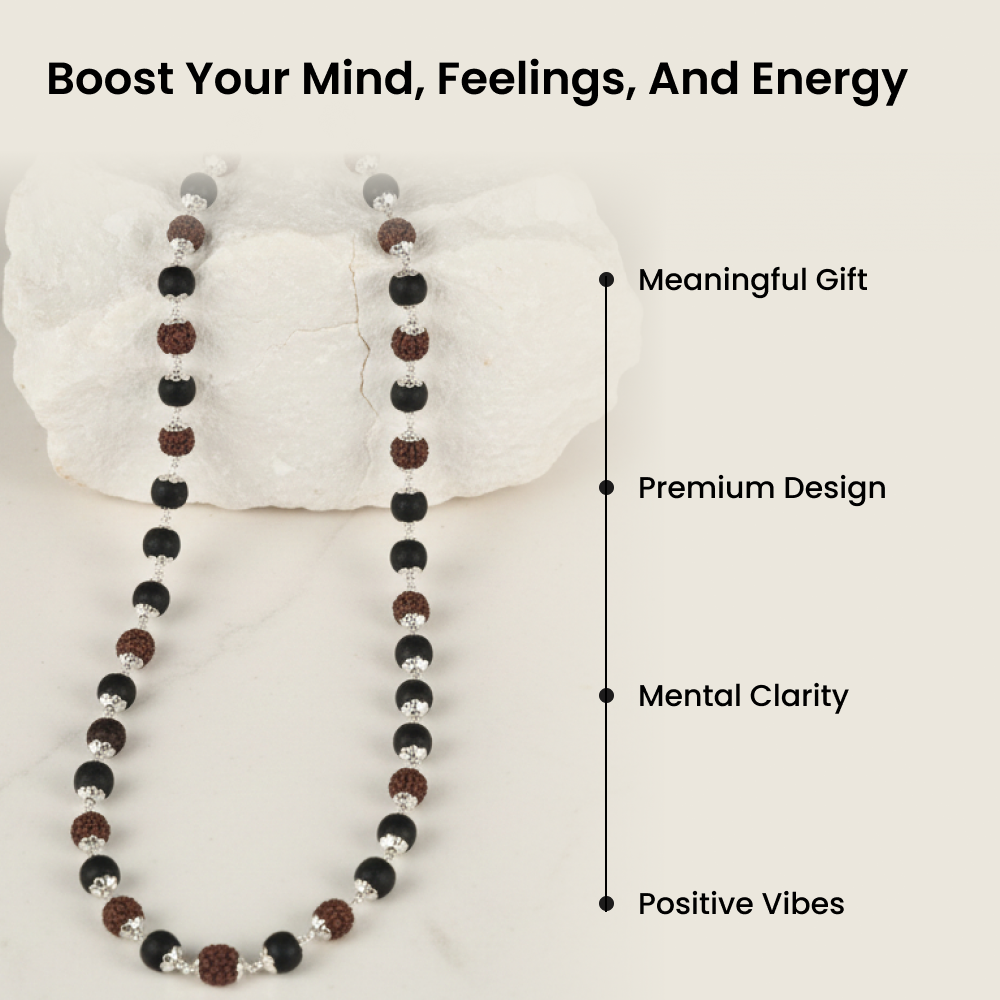 The Rudraksha & Karungali Mala is a powerful spiritual tool designed for meditation, focus, and positive energy. This aesthetic original Karungali & Rudraksha Mala (54 beads) is crafted with care to support spiritual growth and mental clarity. Ideal for daily prayers, meditation, or as a meaningful gift, it helps bring peace, balance, and inner strength to your life.