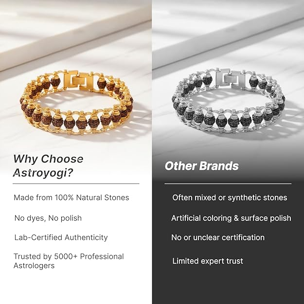 This product has been Siddh through sacred Vedic Puja, mantra jaap, and energization at a temple.Enhance your style and spirituality with this Gold Plated Rudraksha Chain Bracelet. Featuring 5 Mukhi Rudraksha beads, it brings positive energy and balance to your life. Lightweight and durable, it’s perfect for daily wear or a spiritual gifting option for your loved ones. A beautiful blend of tradition and elegance.