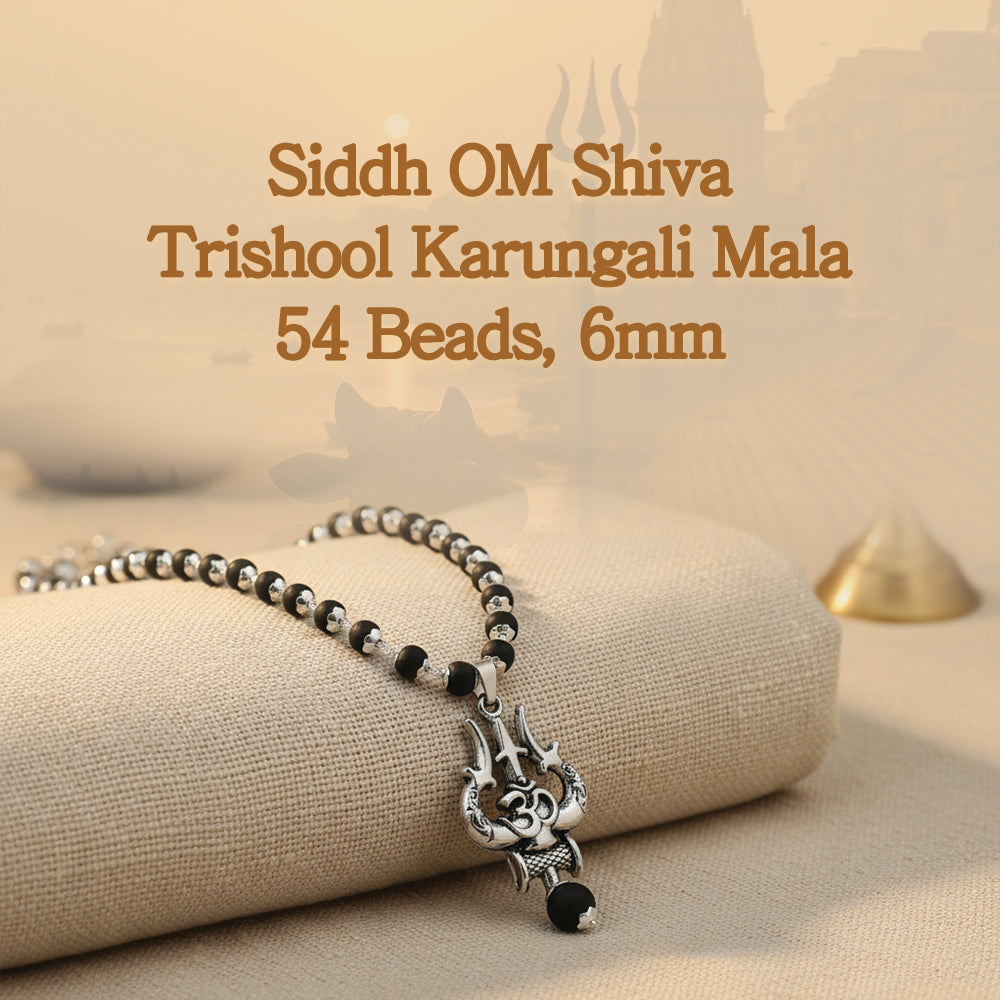 Siddh OM Shiva Trishool Karungali Mala - 54 Beads, 6mm