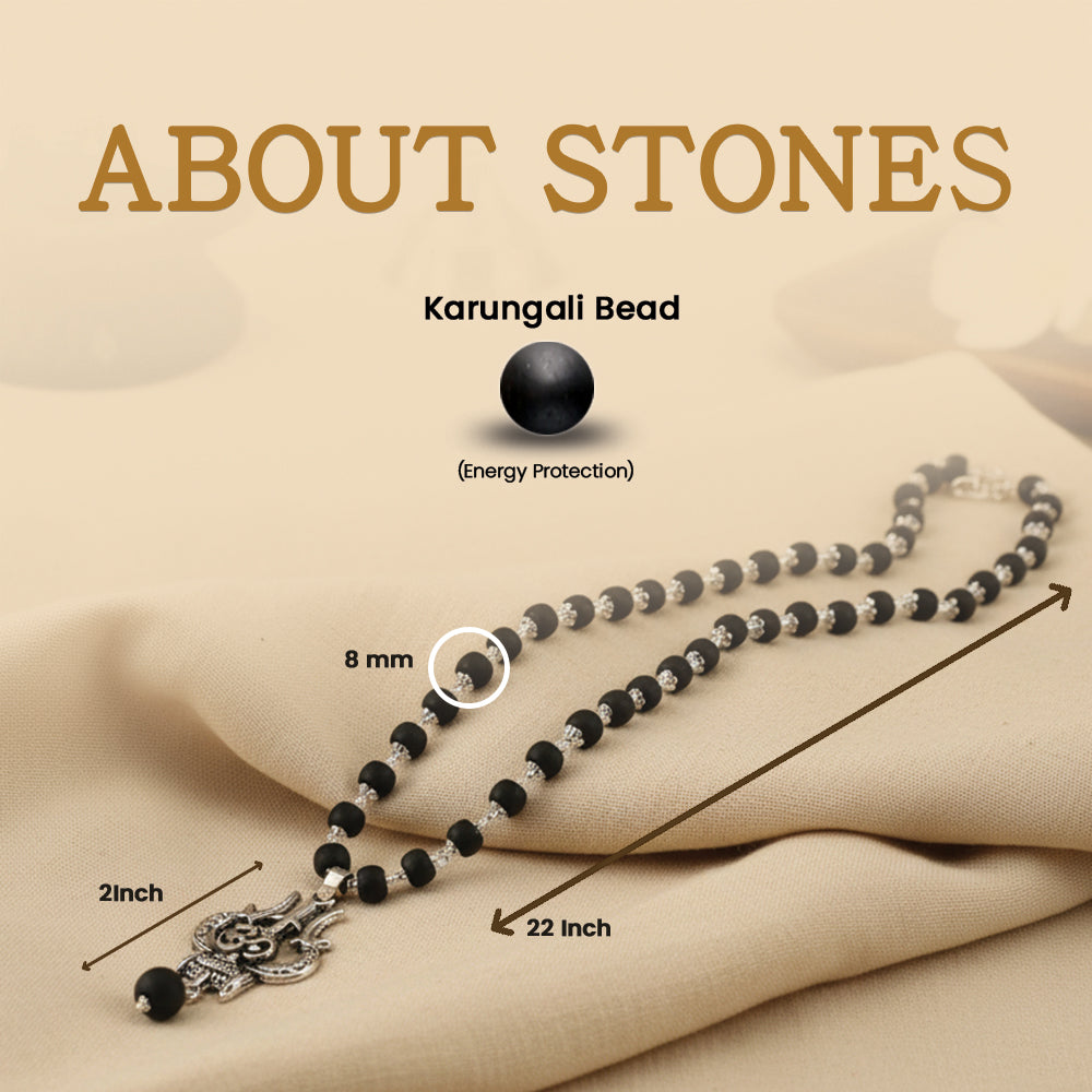 This Siddh Karungali Mala is a sacred spiritual necklace made from natural Karungali wood beads. The Om Shiva Trishool charm adds a meaningful and beautiful touch. The beads have been spiritually charged by an experienced priest through sacred Vedic rituals at the temple. Designed for devotees of Lord Shiva, it supports daily prayers, meditation, and spiritual practices. Wearing this mala helps bring calmness, focus, and devotion, while perfectly fitting your spiritual routine and traditional attire for everyday worship at home or in temples.